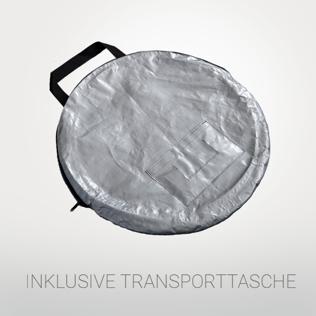 • Lieferumfang: Spannbanner (System aus galvanisiertem Stahlband) inklusive Transporttasche, 4 Heringe zur Bodenbefestigung, 2 Bespannungen